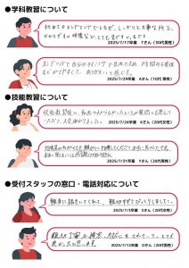 【早岐校】卒業生の声(2025年7月) 2025.08.26 / お知らせ 2025年7月にヒューマンスクール早岐を卒業した皆様より、 たくさんの声をいただきましたので一部ご紹介いたします。 ご卒業おめでとうございます! 免許取得後も快適なカーライフを送られますよう、スタッフ一同心よりお祈り申し上げます。 アンケートのご協力ありがとうございました。 💡各SNSも毎日発信中です!是非ご覧ください💡 Instagram、TikTok、YouTube 前の記事 次の記事 一覧へもどる