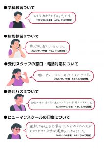 【松浦校】卒業生の声(2025年10月・11月) 2025.12.01 / お知らせ 2025年10月・11月にヒューマンスクール松浦を卒業した皆様より、 たくさんの声をいただきましたので一部ご紹介いたします。 ご卒業おめでとうございます! 免許取得後も快適なカーライフを送られますよう、スタッフ一同心よりお祈り申し上げます。 アンケートへのご協力ありがとうございました。 💡各SNSも毎日発信中です!是非ご覧ください💡 Instagram、TikTok、YouTube 前の記事 次の記事 一覧へもどる